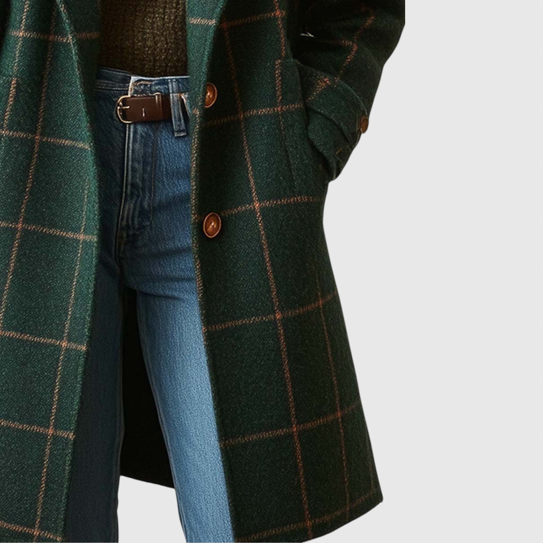 Női retro kabát gallérral és kockás mintával — időtlen, erőteljes, megkérdőjelezhetetlenül te.
