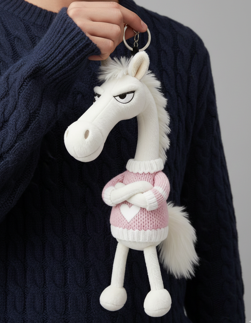 Fedezd fel a „Merész ló” kulcstartót, a tökéletes kiegészítőt mindenkinek, aki értékeli a humor és az egyediség egy cseppjét. Ikonikus „morcos” kifejezése és stilizált dizájnja bármely táskát vagy kulcscsomót érdekes tárggyá varázsol.