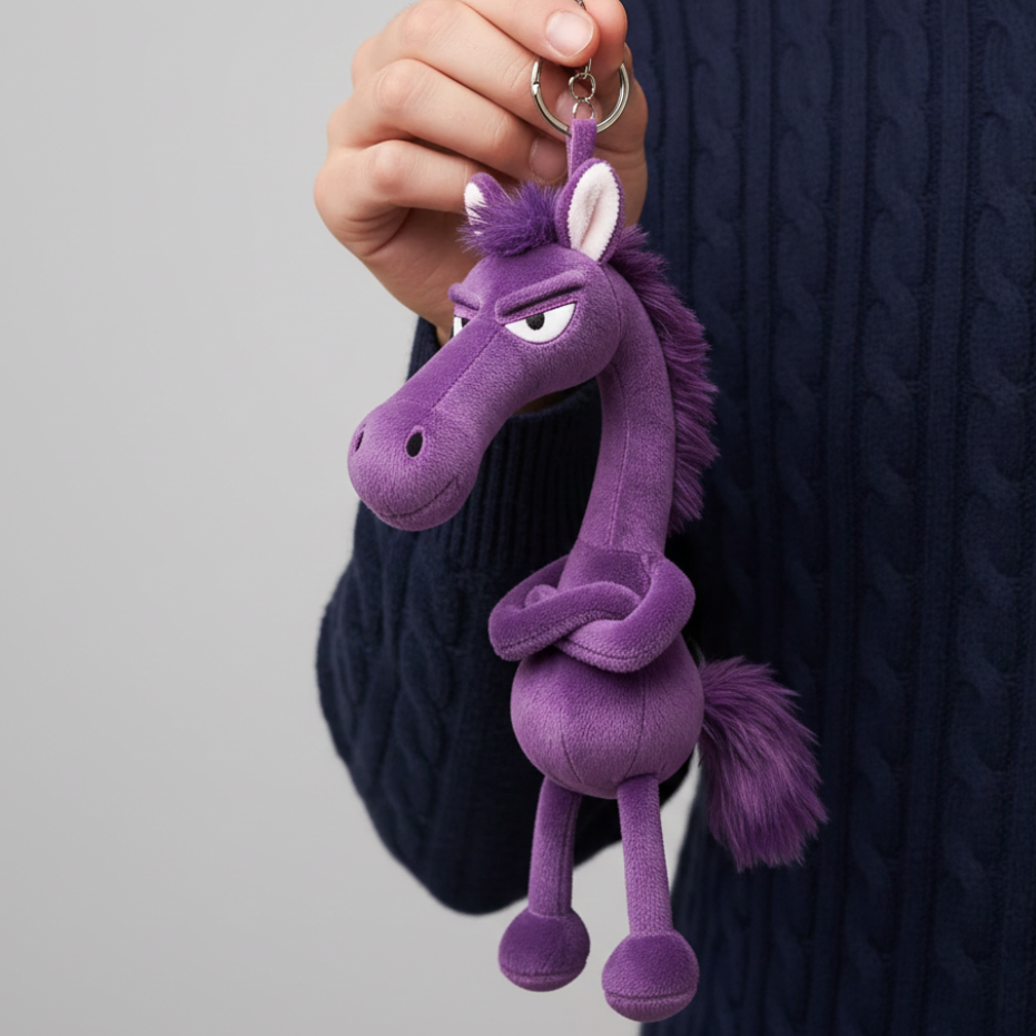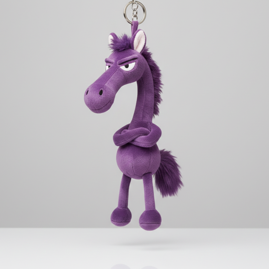 Fedezd fel a „Merész ló” kulcstartót, a tökéletes kiegészítőt mindenkinek, aki értékeli a humor és a különlegesség elegyét. Ikonikus „morgós” kifejezésével és stilizált dizájnjával ez a plüssfigura bármilyen táskát vagy kulcscsomót érdekes tárggyá alakít.