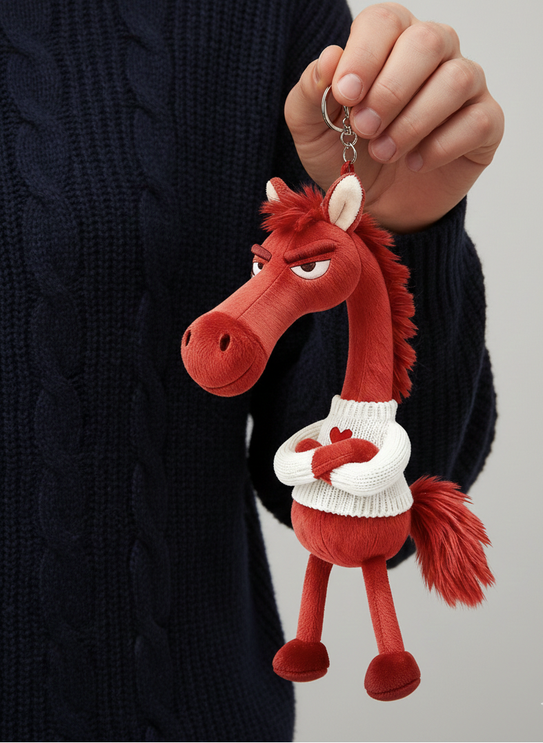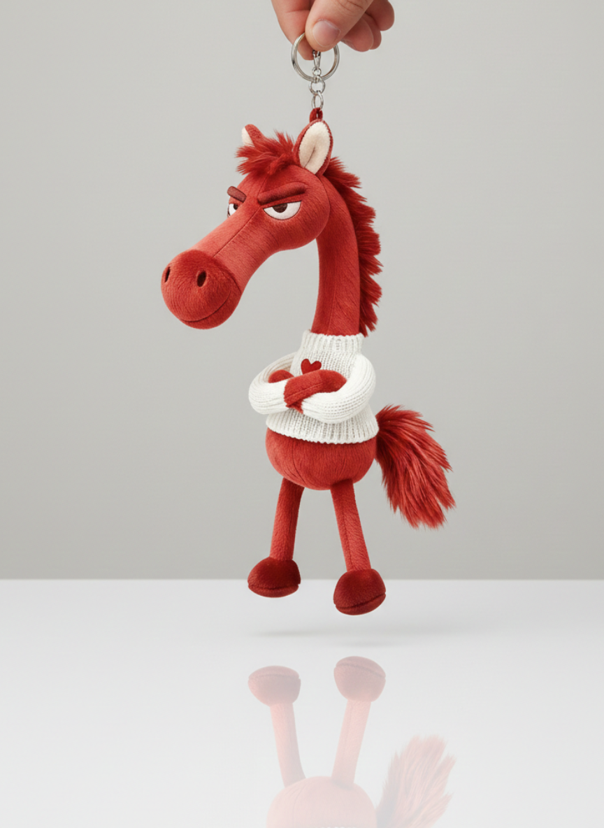Fedezd fel a „Merész ló” kulcstartót, a tökéletes kiegészítőt mindazoknak, akik szeretik a humoros és egyedi dolgokat! Ez a plüssállat ikonikus „mohó” kifejezésével és stilizált dizájnjával bármilyen táskát vagy kulcscsomót figyelemfelkeltő tárggyá varázsol.