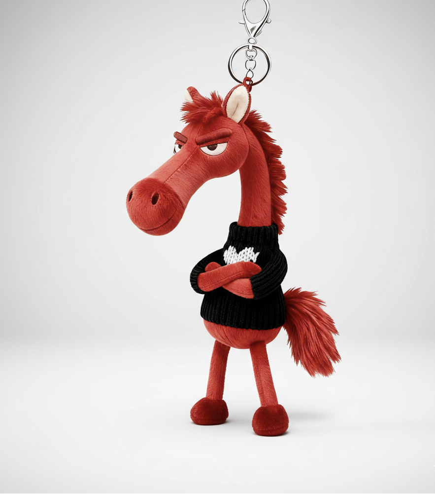 Fedezd fel a „Merész ló” kulcstartót, a tökéletes kiegészítőt mindenkinek, aki értékeli a humor és az egyediség elegyét! Ikonikus „morcos” kifejezése és stilizált dizájnja bármilyen táskát vagy kulcscsomót érdekes tárggyá varázsol.