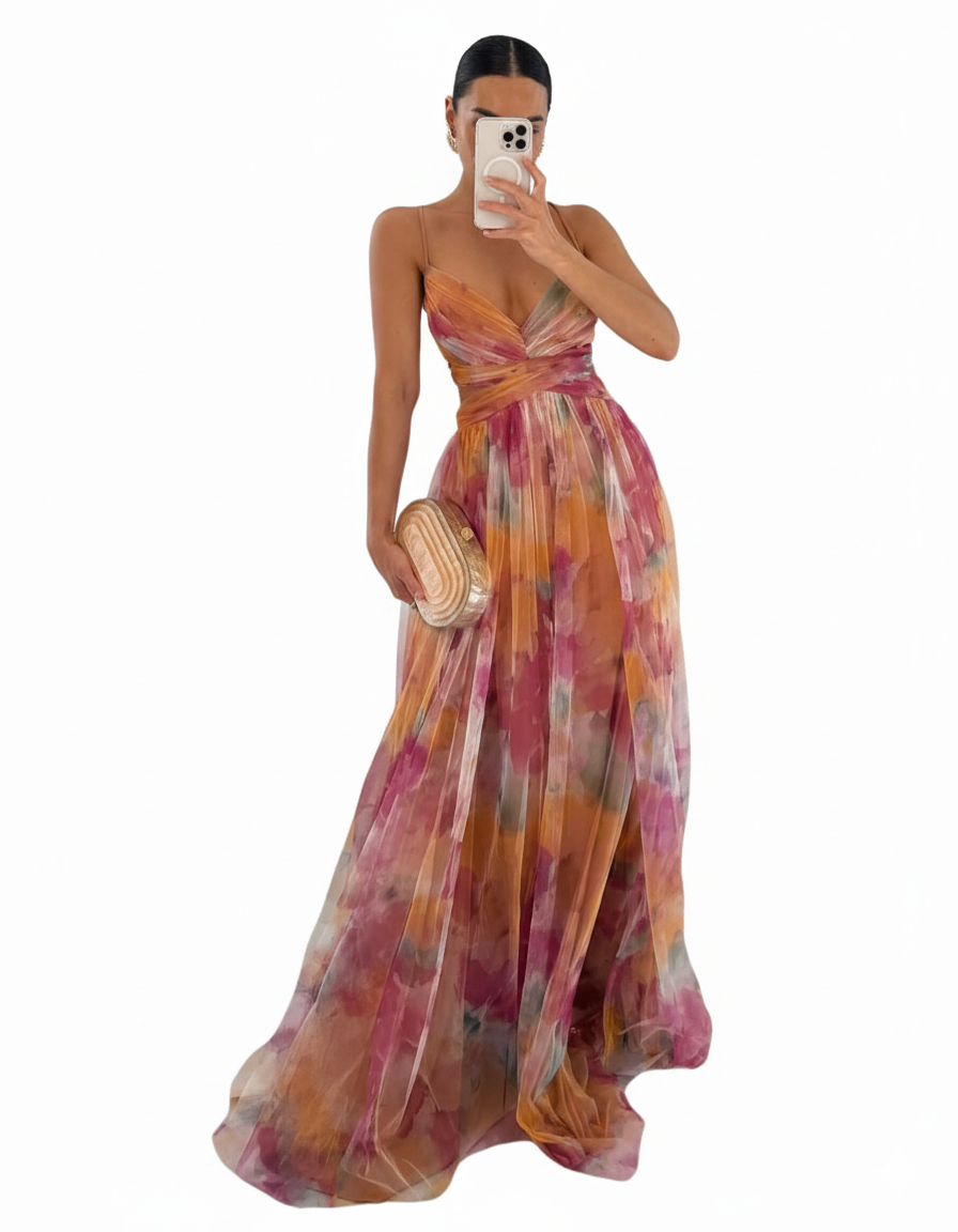 Az enyhe és lélegző chiffonból készült, beépített béléssel rendelkező Giselle természetes eleganciával öleli körül a testet. A virágminta romantikus érintést ad, míg a állítható illeszkedés tökéletessé teszi minden alkalomra.