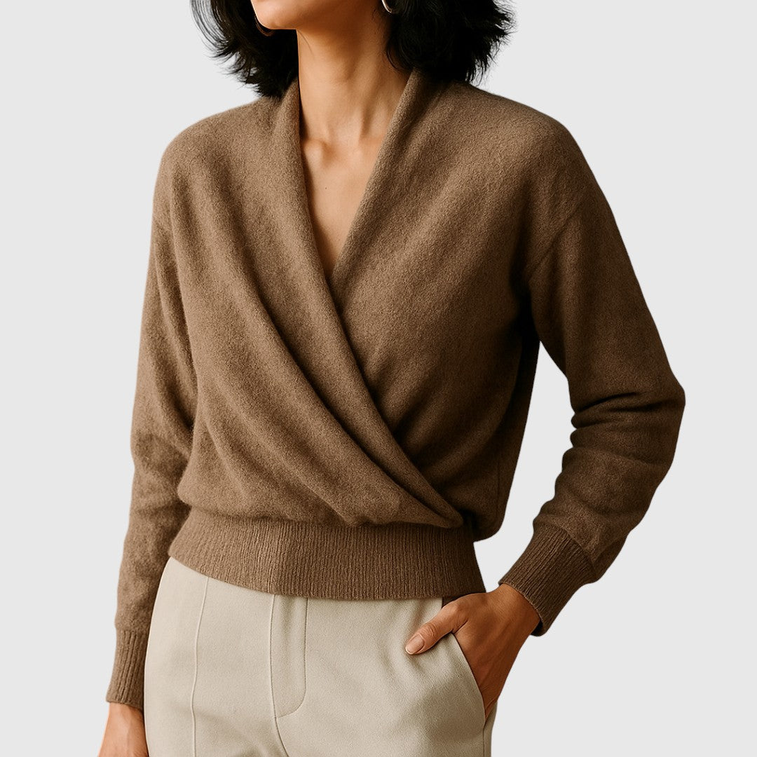 Elegancia, amely körülölel. Elena egy V-kivágású, elegáns pulóver, amely szépen hullik, optikailag nyújtja az alakot, és feldobja minden outfitet – az irodától a vacsoráig.