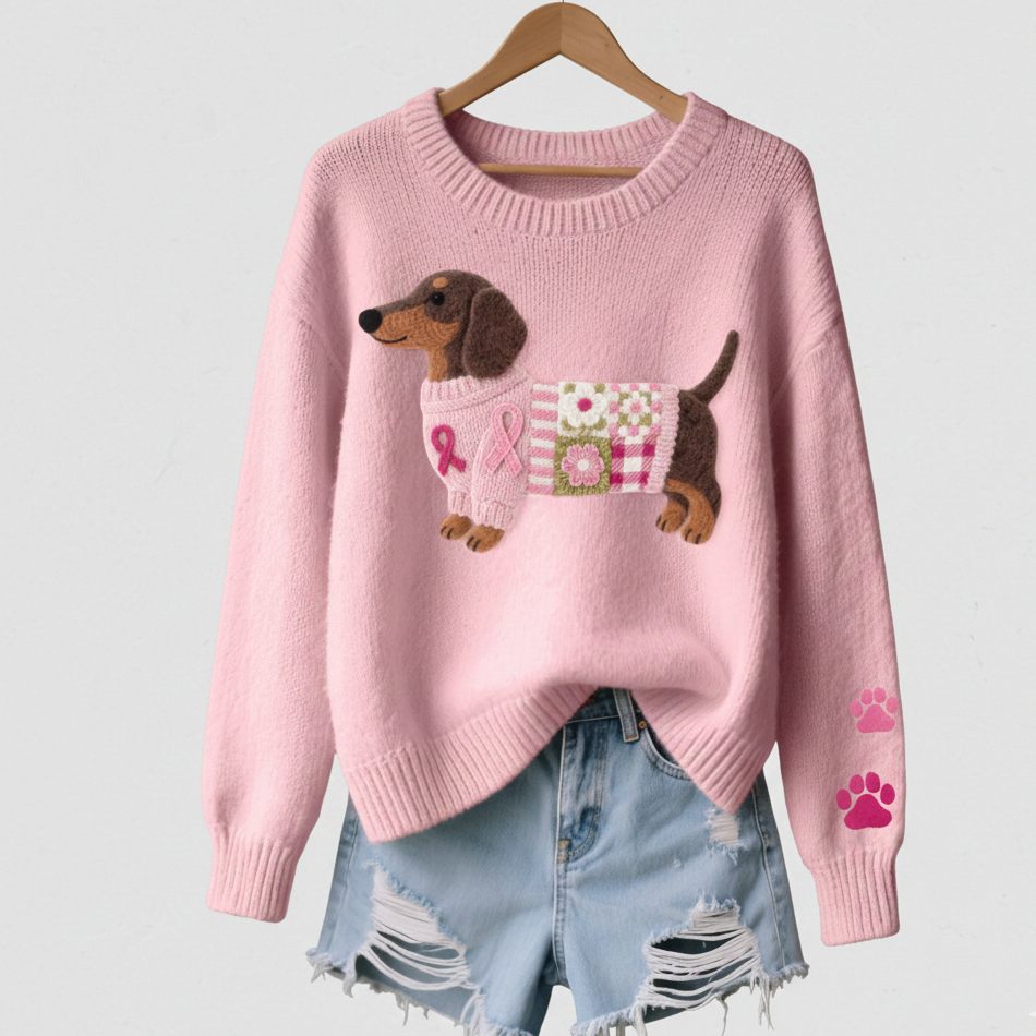 Kényelmes Kötött Pulóver Nőknek Tacskó Mintával